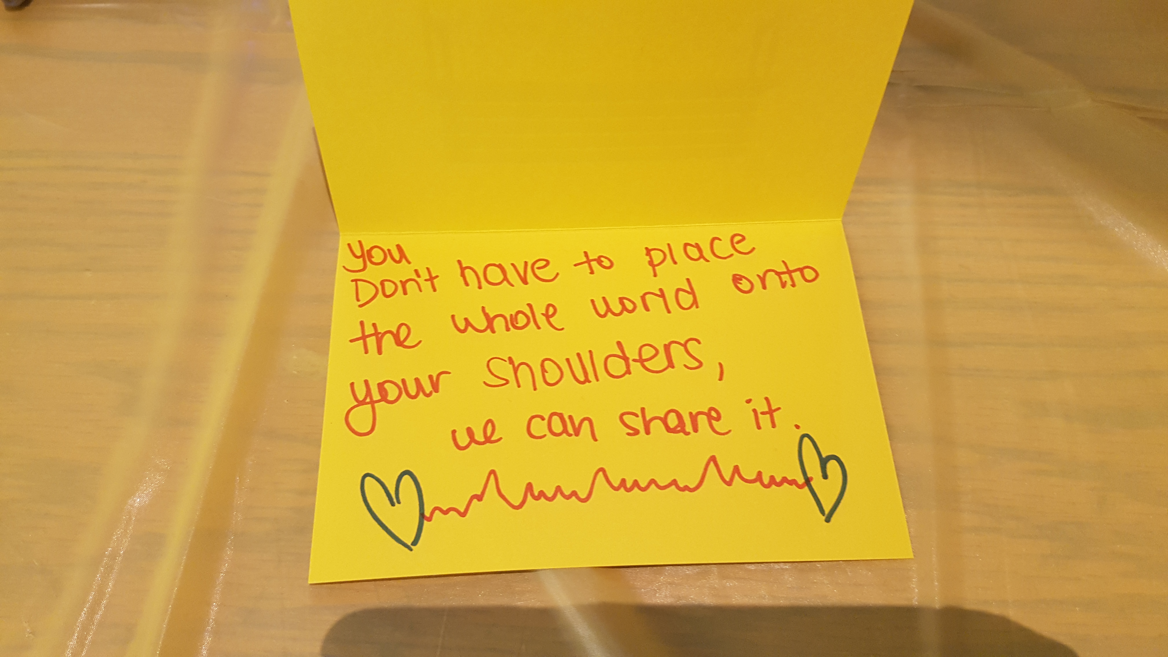 Affirmations authored by students in attendance were left for other students who may need a positive message from fellow students.