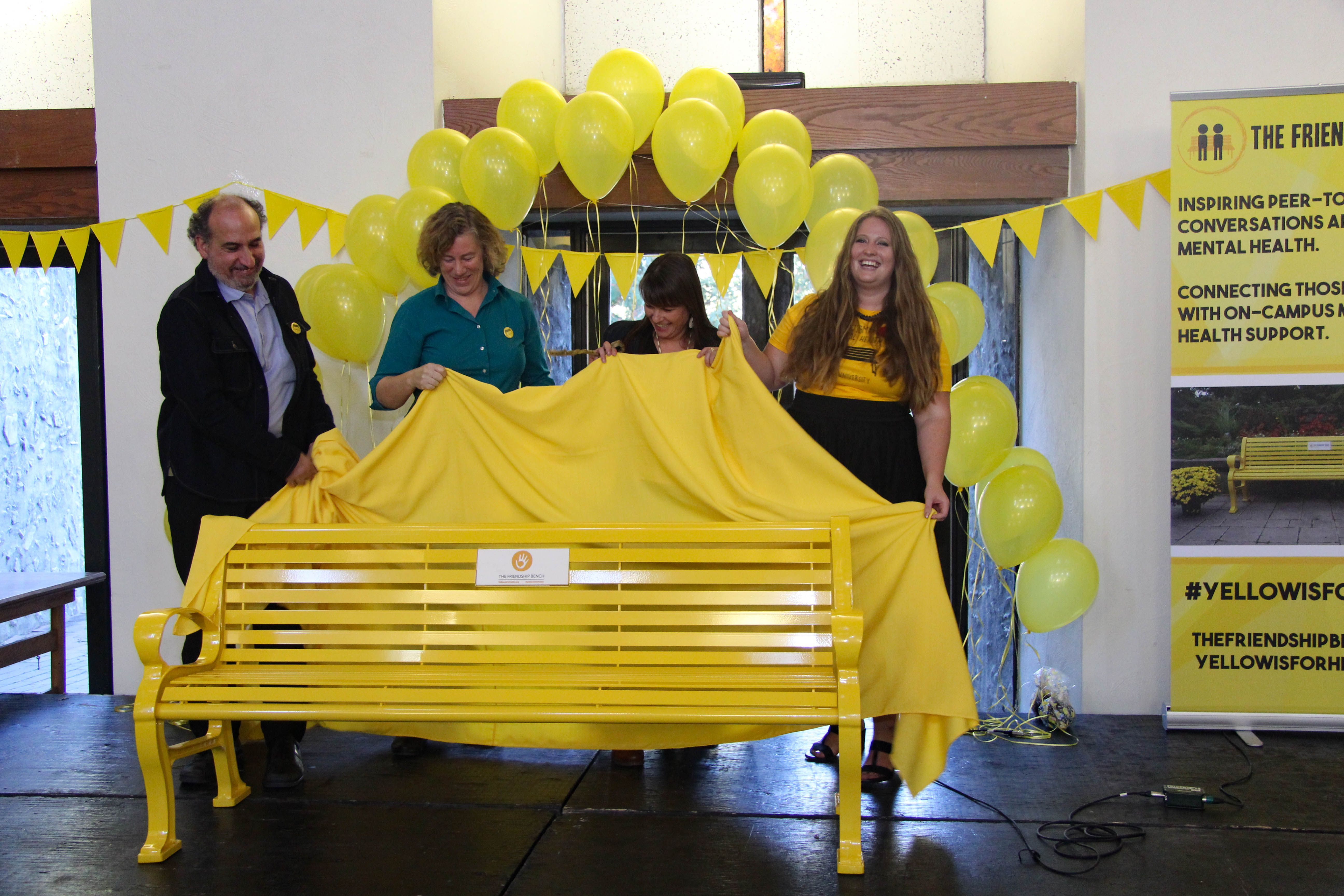 Alaine, along with University’s representatives, unveiled The Friendship Bench to shouts of “Hello” from the crowd gathered.